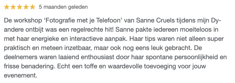 Je website ziet er top uit, met professionele beelden die je liet maken. Maar, je wilt ook je dagelijkse werkzaamheden zichtbaar maken voor je klanten. Dit om bijvoorbeeld je social media of je website mee aan te vullen. De kans dat je dagelijks een professionele fotograaf over de vloer hebt is klein. Je wilt ook zélf mooie beelden kunnen schieten met je telefoon .